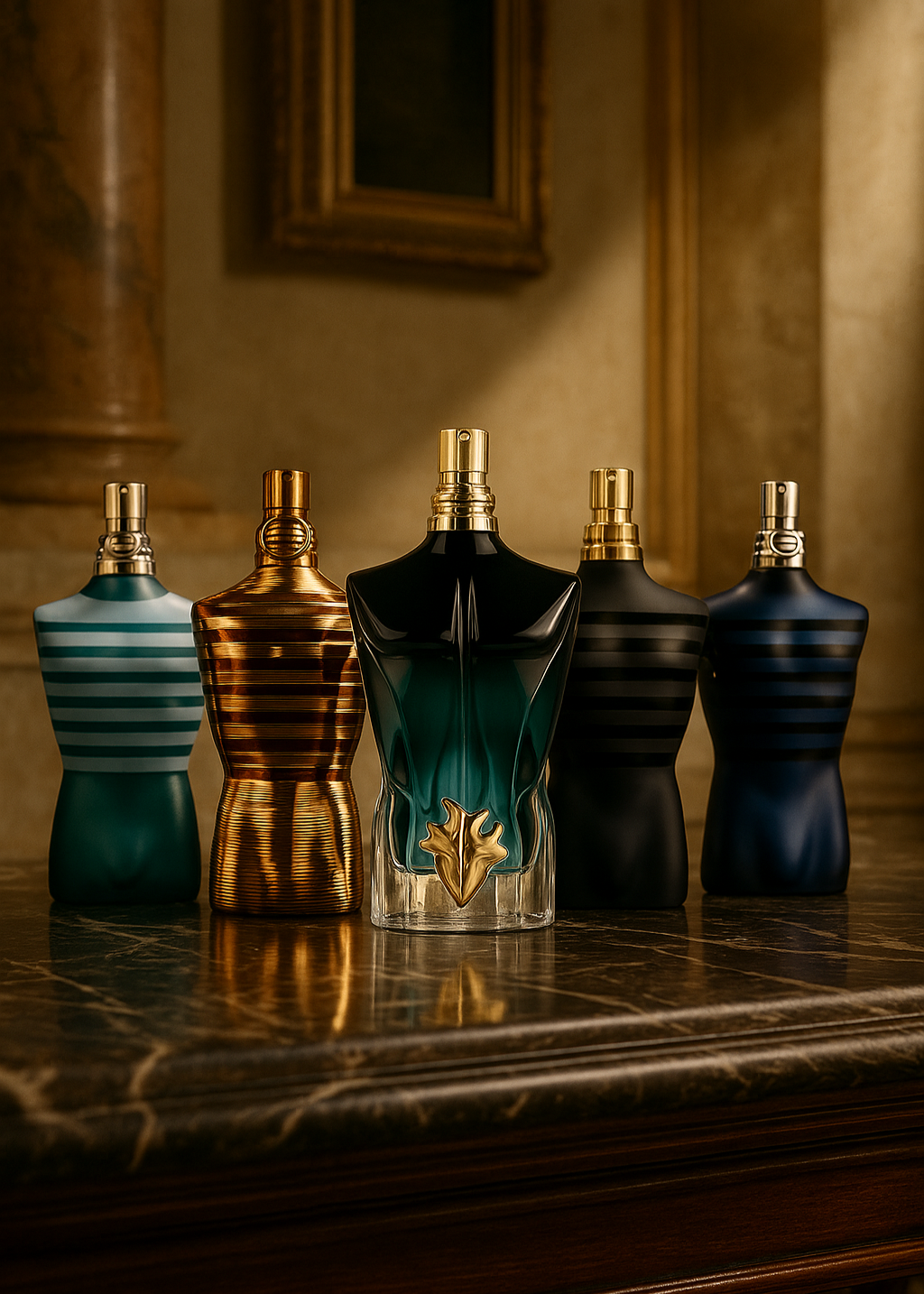 A bold ensemble of five iconic scents – each a reinterpretation of masculinity, playfulness, and timeless style.